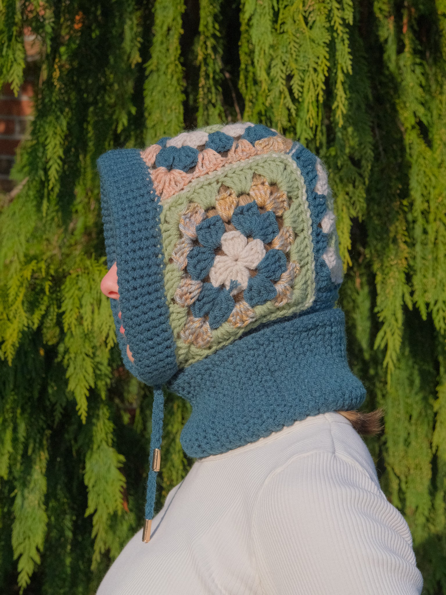 This cozy balaclava is carefully crafted with a blend of cotton and acrylic yarns and finished with durable metal aglets. A built-in drawstring allows for a more snug fit if desired– perfect for the winter weather!