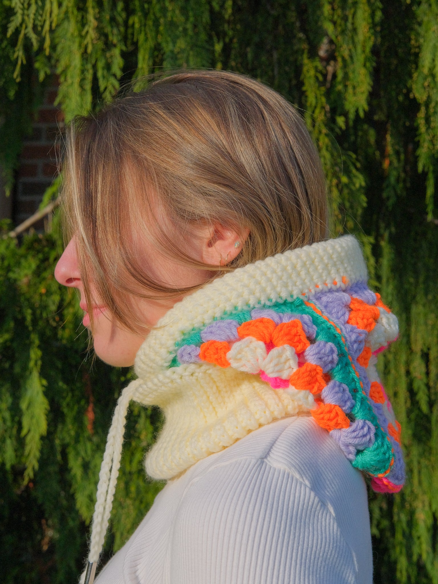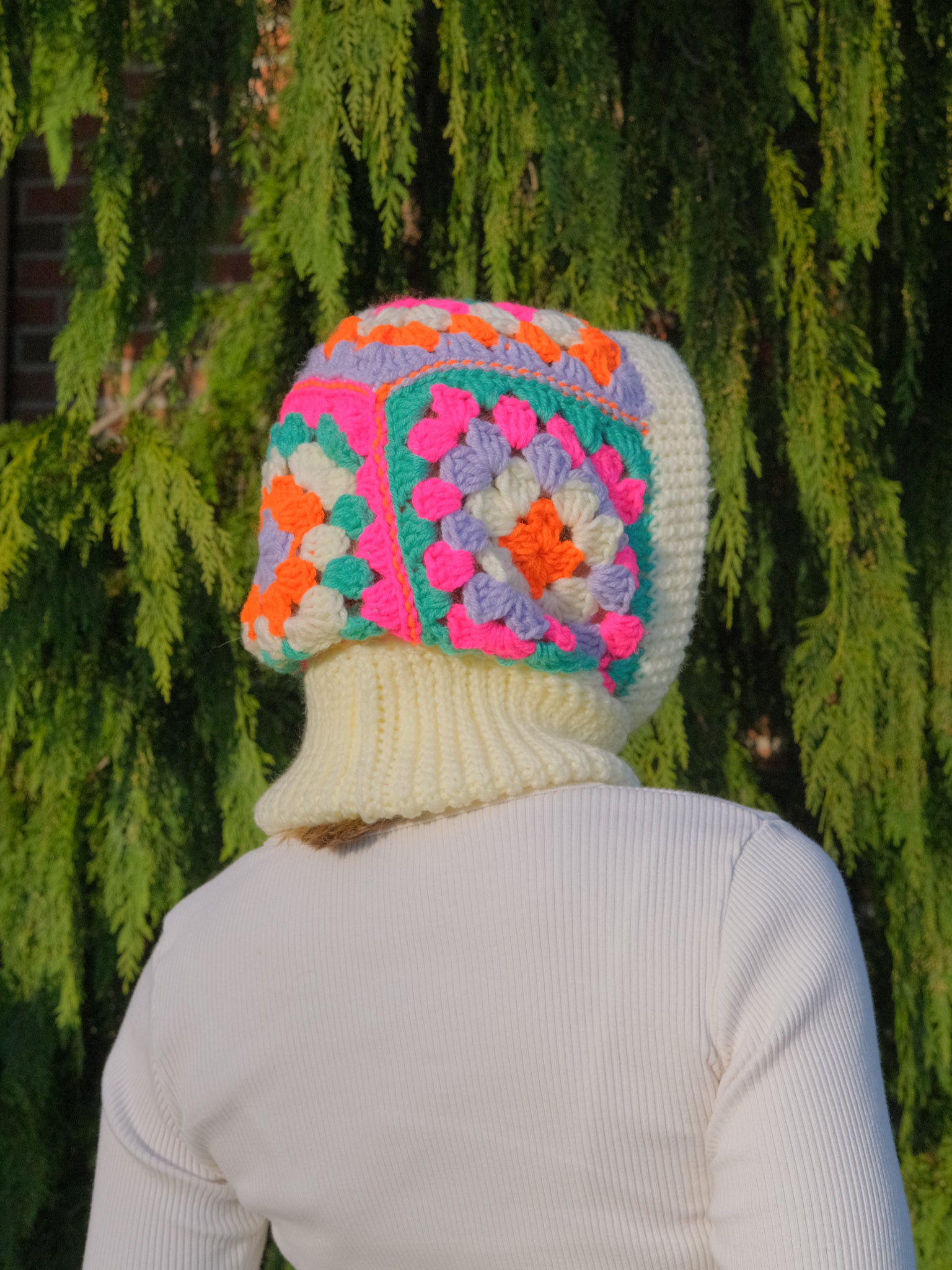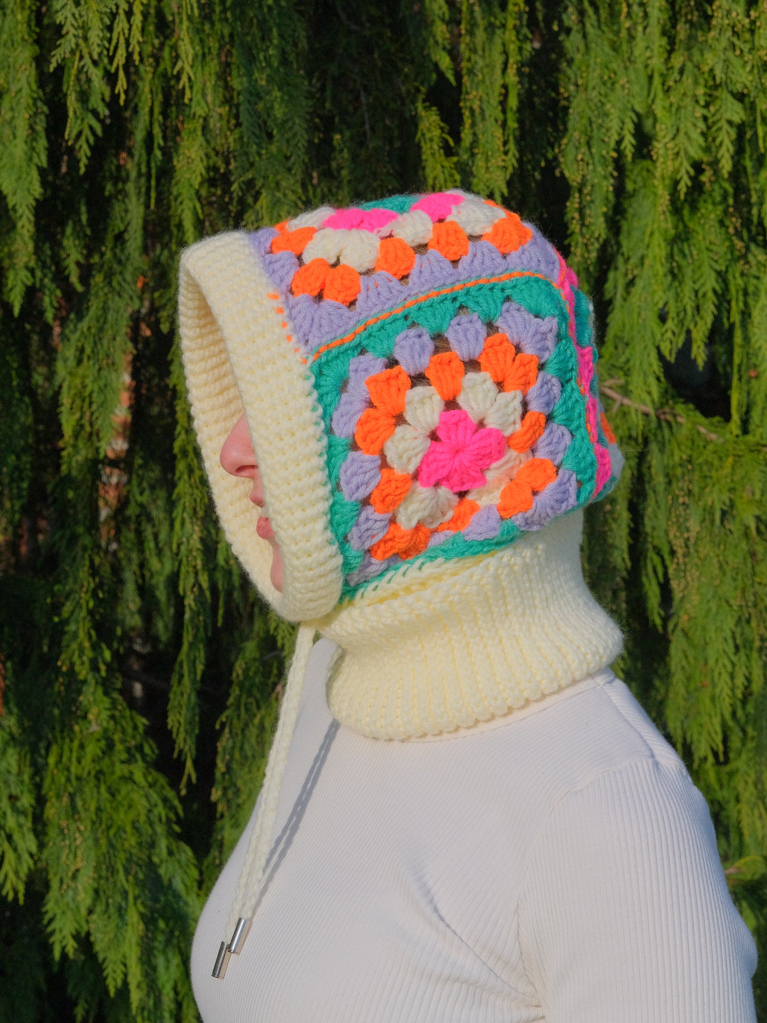 This cozy balaclava is carefully crafted with a blend of cotton and acrylic yarns and finished with durable metal aglets. A built-in drawstring allows for a more snug fit if desired– perfect for the winter weather!